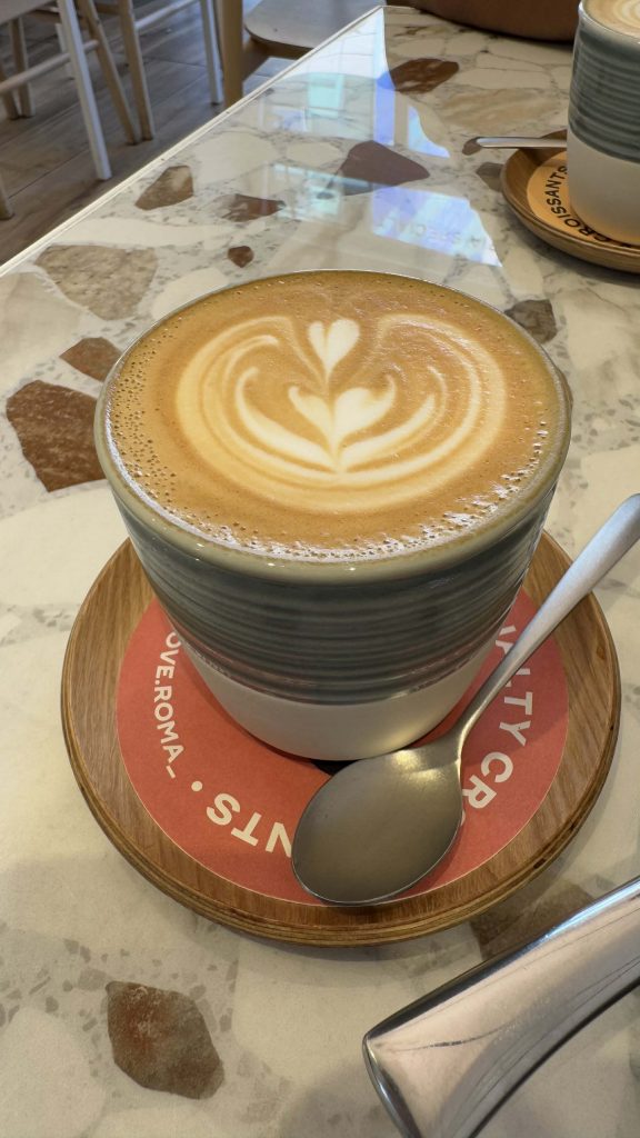 I came across this one, I think, two years ago, and fell in love. If you are in Italy, of course, you will find the famous Cornetto, which is not a croissant, and I always miss having a croissant when in Rome. I spent a while searching for a French-inspired coffeeshop and stumbled upon Le Levain, which means “yeast or sourdough starter” in French. They have one of the best coffees to order in Rome, along with a huge range of pastries, especially French pastries and cakes such as éclairs, viennoiseries, tartes au citron, as well as many Italian delights. It is truly one of the coffee shops in Rome that offers high-quality products, a lovely indoor setting, and wonderful, helpful staff.